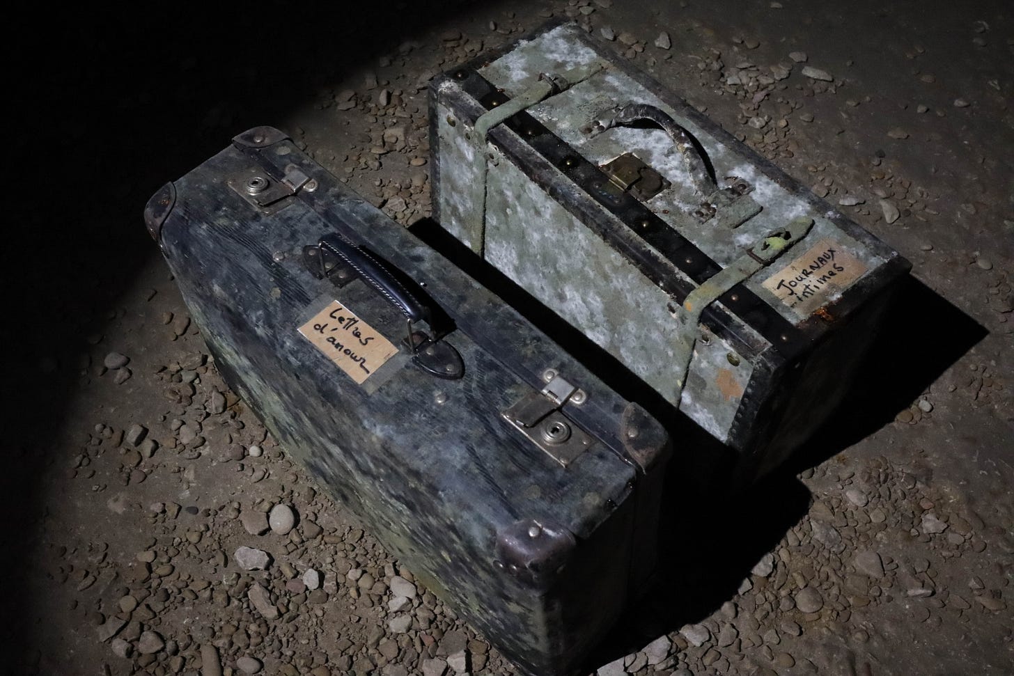 So that’s how I came to be carefully dodging the puddles in the murk of a Roman crypt, staring for long moments at a red shoe on a Roman boulder; a pair of naked breasts on a pink T-shirt hanging from an overhead pipe; a pair of battered old suitcases labelled “lettres d’amour” (love letters) and “journaux intimes” (intimate journals); a white dress that belonged to Calle’s mother. And every few yards, artfully lit by small spotlights, those portraits of unseeing eyes, smudged and stained by the advancing decay that will ultimately consume them.